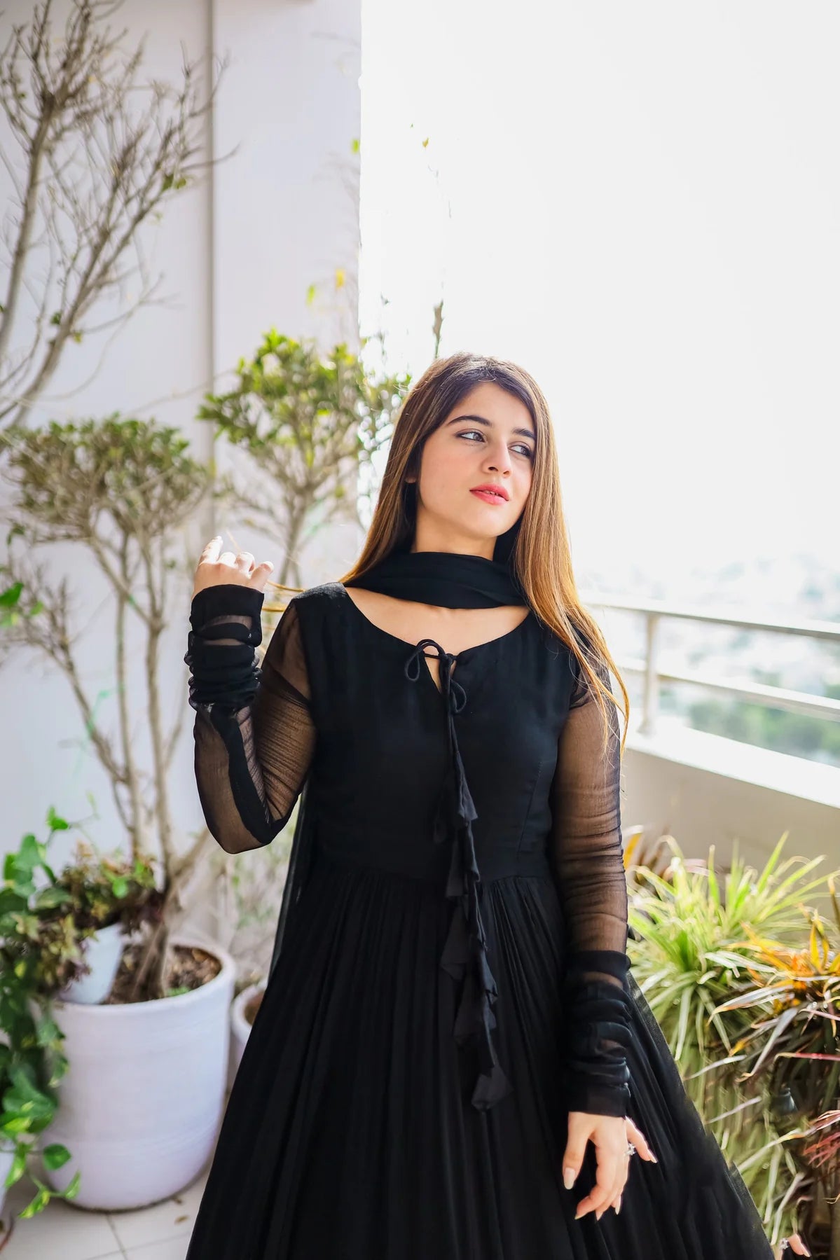 Ideal for festive events, wedding functions, or elegant evening gatherings, this double-layered Anarkali is all about understated grandeur. Pair it with jhumkas, statement heels, and soft curls for a perfectly poised, elegant look.