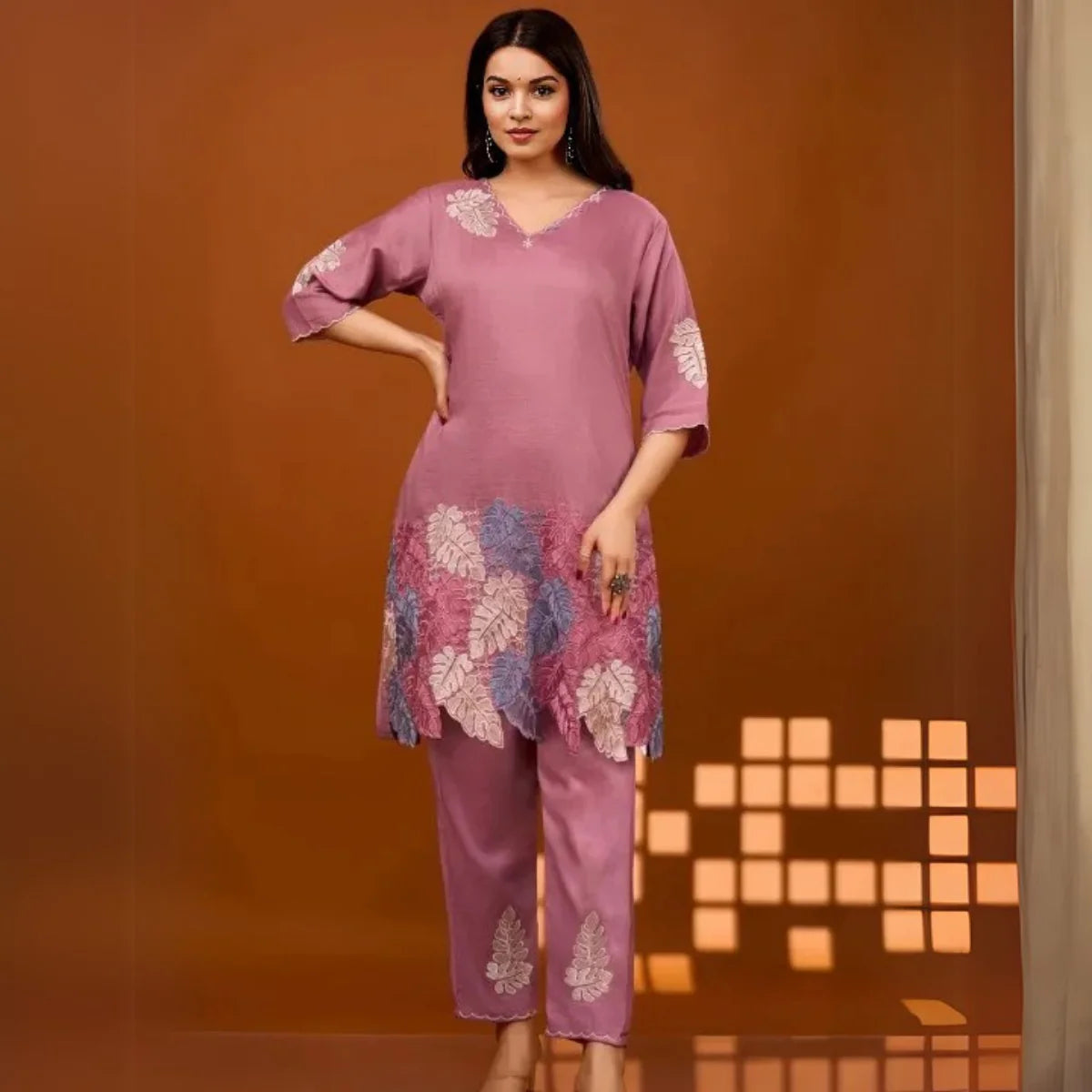 The casual cotton co-ord set is ideal for relaxed outings, featuring breathable fabrics and minimalist designs like stripes or solid colors, ensuring comfort and effortless style.