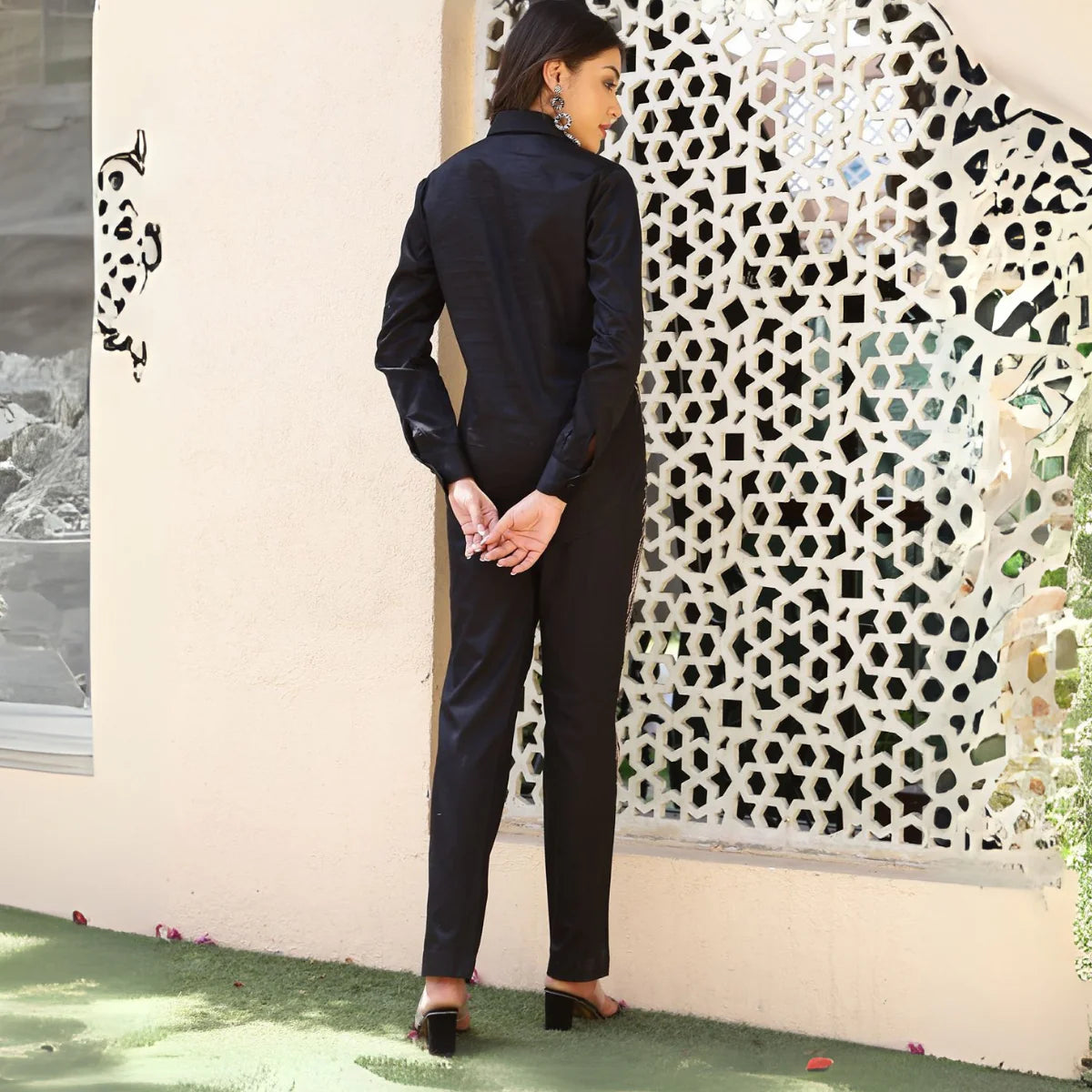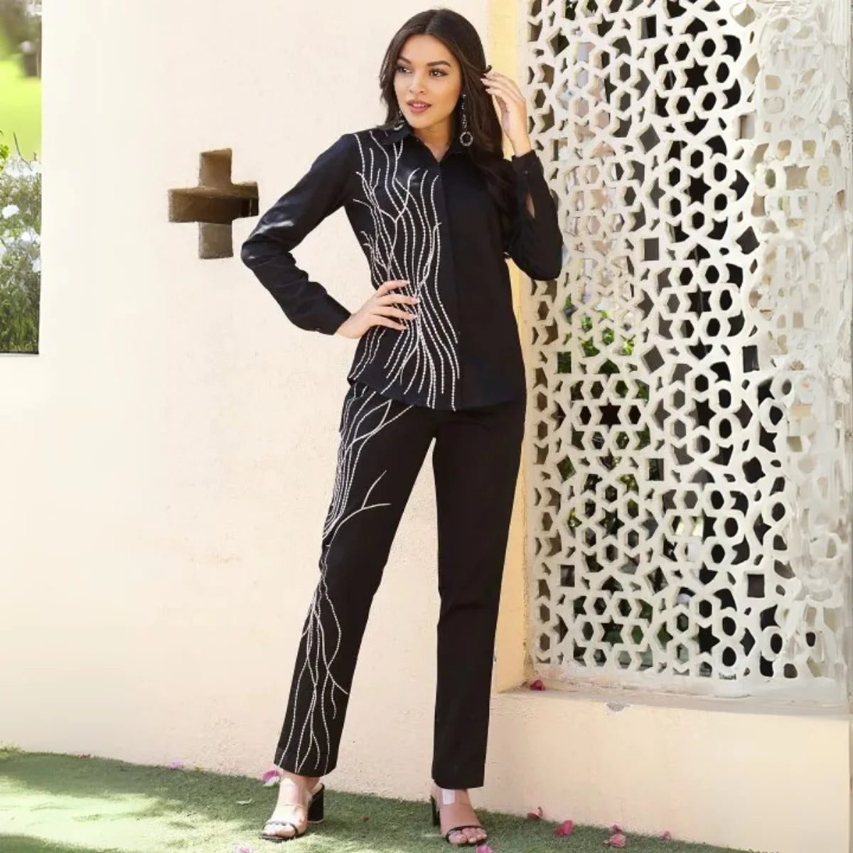 For a polished professional look, the chic formal co-ord set combines structured blazers and tailored trousers in neutral tones, seamlessly transitioning from office meetings to evening events.