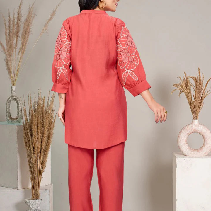 For a polished professional look, the chic formal co-ord set combines structured blazers and tailored trousers in neutral tones, seamlessly transitioning from office meetings to evening events.