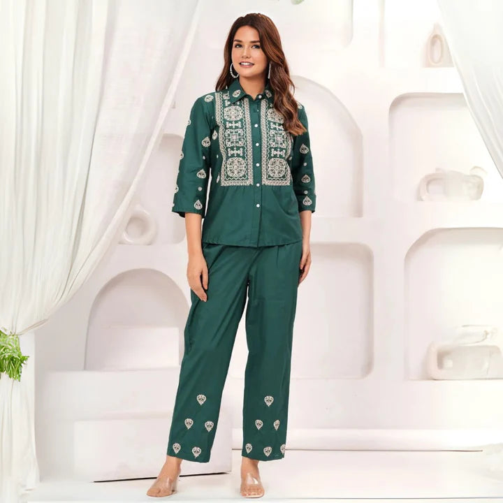 The casual cotton co-ord set is ideal for relaxed outings, featuring breathable fabrics and minimalist designs like stripes or solid colors, ensuring comfort and effortless style.
