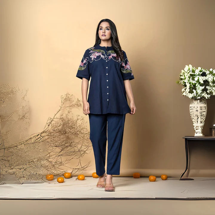 The casual cotton co-ord set is ideal for relaxed outings, featuring breathable fabrics and minimalist designs like stripes or solid colors, ensuring comfort and effortless style.